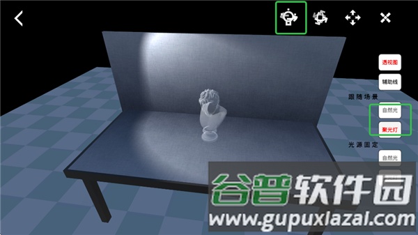 4、进行打光练习时,选择可移动光源,点击上方按钮并拖动,即可调整光源位置。