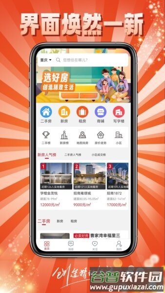 这款APP的核心功能设计得很贴心,先从首页开始,它允许你切换城市或直接在搜索框输入小区、商圈或地标,快速进入二手房、新房、租房、商铺和写字楼的专区,还会展示一些热门推荐。