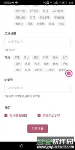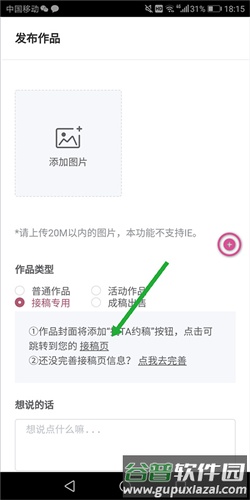 3、在新页面中上传代表作品,填写相关信息,作品类型需选择“接稿专用”;