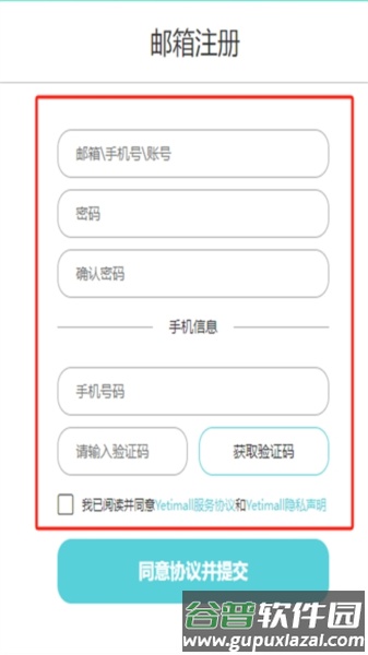 4.填写邮箱、手机号、密码等信息,同意协议后提交即可;