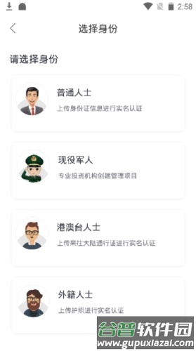 4、在界面中选择符合个人情况的身份类型进行认证。