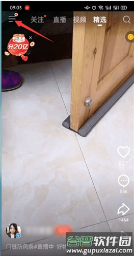 2. 打开火山直播免费版,点击界面左上角的三横线图标。