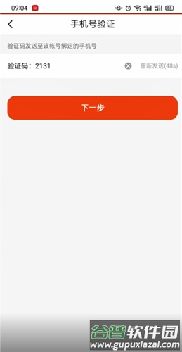 6. 根据提示输入手机验证码,再次点击“下一步”。