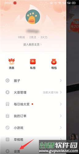 2. 接着在菜单中点击“设置”按钮。
