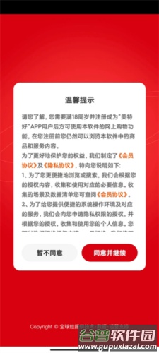 1、在本站下载美特好到家app,打开软件点击同意并继续按钮;
