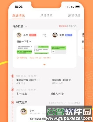 2, 客户管理: 完整记录客户信息与跟进历程,快速录入客户资料。