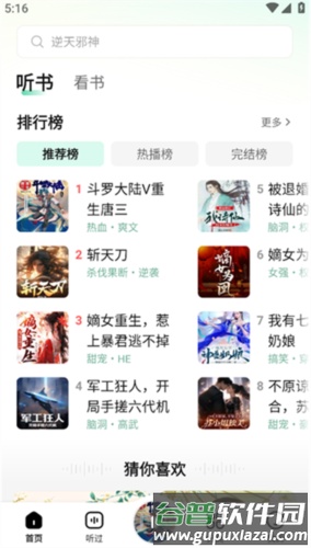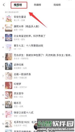 2、选择推荐榜栏目,即可浏览系统根据你的兴趣智能筛选的有声书作品。