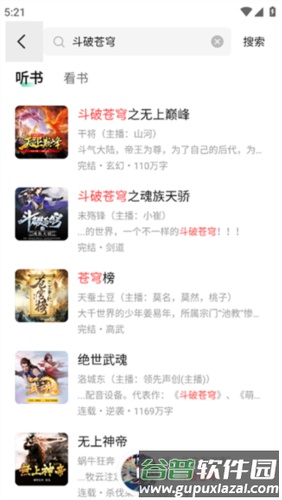 也可通过顶部搜索栏输入书名,查找特定书籍进行收听。