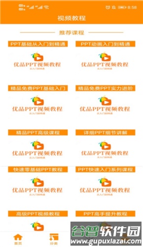 进入教程板块,可查看推荐的PPT教学内容,观看视频进行学习。