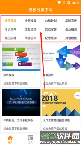 打开软件后,在首页上方选择你需要的PPT应用场景。