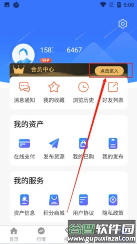 2、在个人中心页面找到上方的【会员中心】选项,点击【点击进入】。