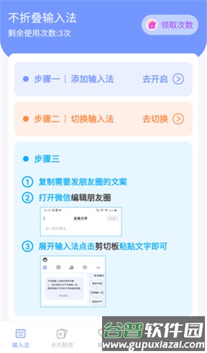 5、应用还提供一项实用功能,可防止发送的朋友圈文案或图片被折叠,通过绑定输入法并在软件内复制粘贴即可实现。
