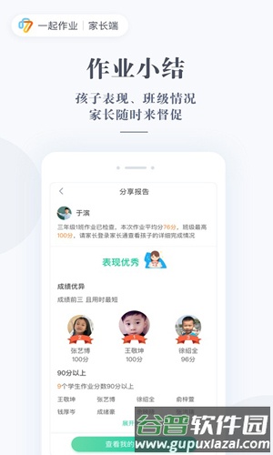2. 通过应用接收老师通知,查看作业完成进度,参与家校互动;