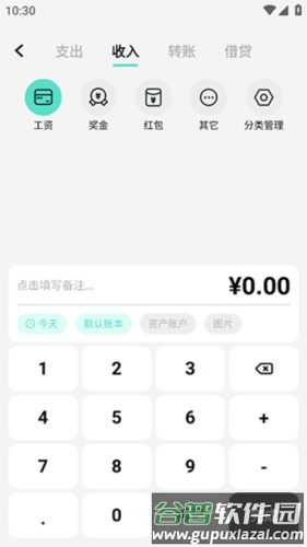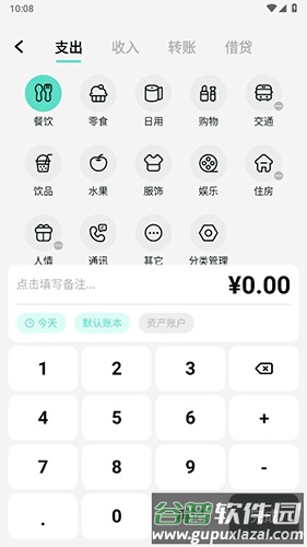 3、选择对应的交易类型,包括支出、收入、转账、借贷等不同选项;