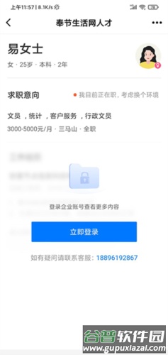 4、登录你的企业账号后,可以查看该求职者的详细资料。