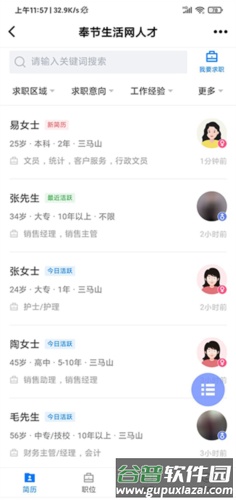 3、页面会展示许多求职者信息,点击其中一位进行查看。