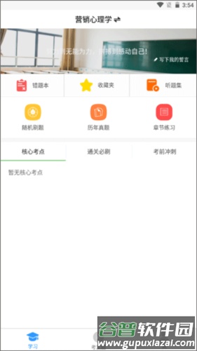 1、打开自考友app进入主界面,点击【学习】模块上方的按钮。