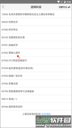 4、点击专业后,页面跳转至科目选择;选择要练习的科目,若无对应科目可点击下方“添加”按钮。