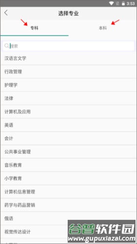 2、页面分为专科与本科两个部分,请根据自身情况选择。