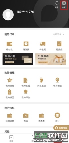 1、在“我的”页面点击右上角的设置图标。