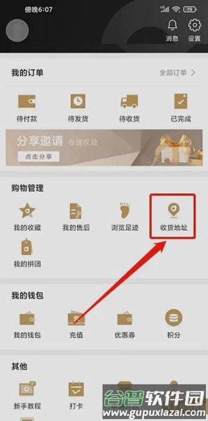 1、进入“我的”界面,点击【收货地址】选项。