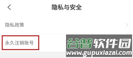 3、进入隐私与安全页面后,找到并点击“永久注销账号”功能。