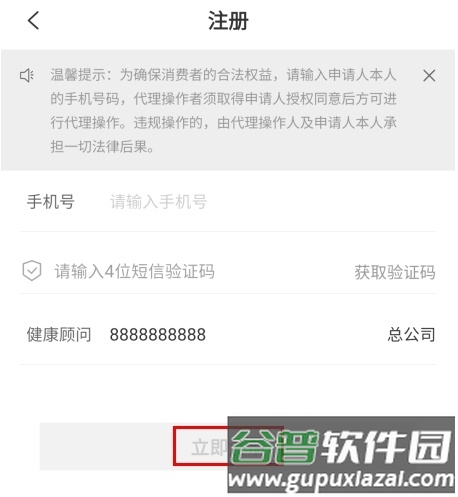 2、在注册页面输入手机号码并获取验证码,填写验证码后即可完成注册。