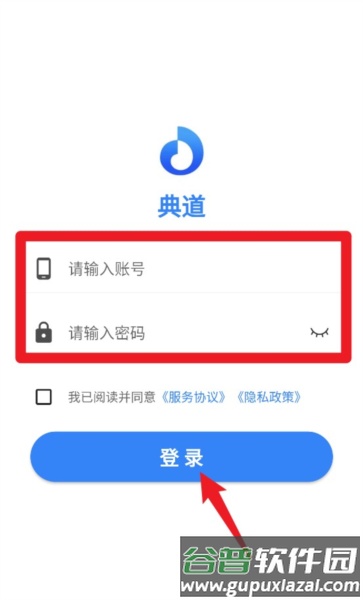 1、打开典道App,输入账号密码登录系统;首次使用时请先阅读并同意相关服务协议与隐私政策。
