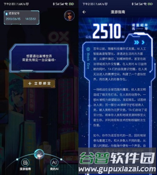4、点击“漫游指南”,会发现应用设计了具代入感的“世界观”;