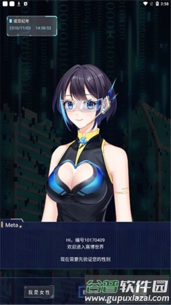 2、接下来会出现近未来风格的引导角色,协助完成性别、昵称、头像设置及设备绑定(可选暂不绑定);