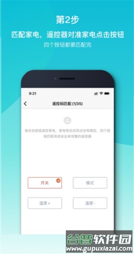 4、匹配加点,将遥控器对准家电点击按钮,四个按钮都要匹配完成;