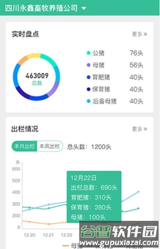 2、采用图表展示出栏与环境控制数据,便于监测;