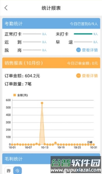 2、查看销售报表、拜访统计及打卡情况,掌握相关数据;