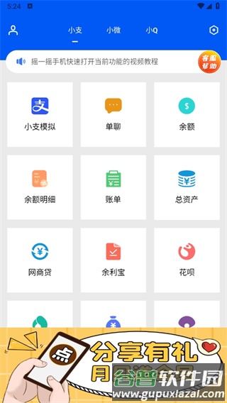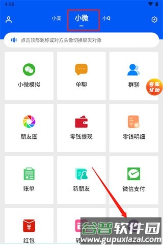 2、小支:提供小支模拟、单聊、余额、余额明细、账单、总资产等功能;