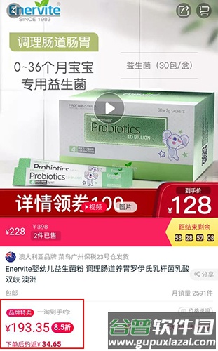 在一淘上购买商品,例如某款宝宝益生菌,显示返利为34.65集分宝。当订单完成交易,即买家确认收货后,返利会出现在已到账订单列表中。