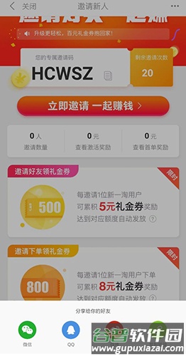 6、 邀请好友下载并使用一淘,邀请人可获得额外的返利奖励。