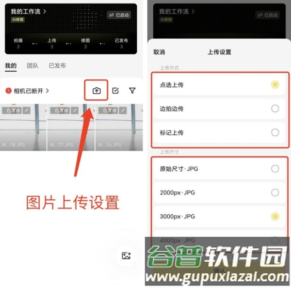 标记上传:相机内直接标记待上传照片,应用将自动读取。