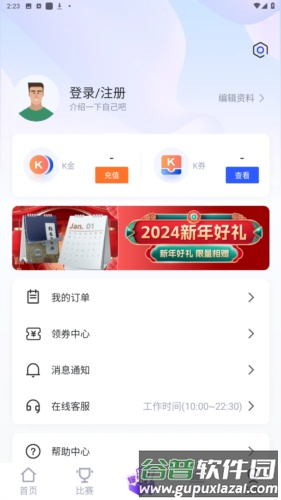 1.打开应用后,进入“我的”个人页面,点击页面上的“登录/注册”按钮。