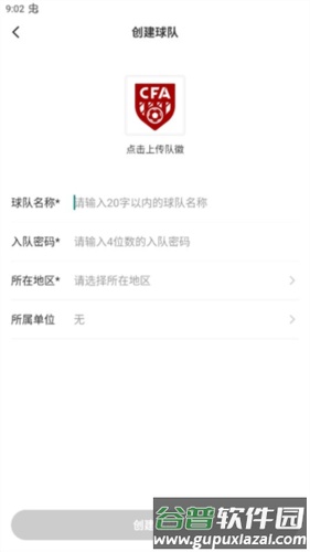 3、填写球队名称等相关信息,然后点击创建按钮。