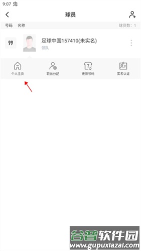 3、在目标球员条目左侧点击三个小点,选择“个人主页”选项。