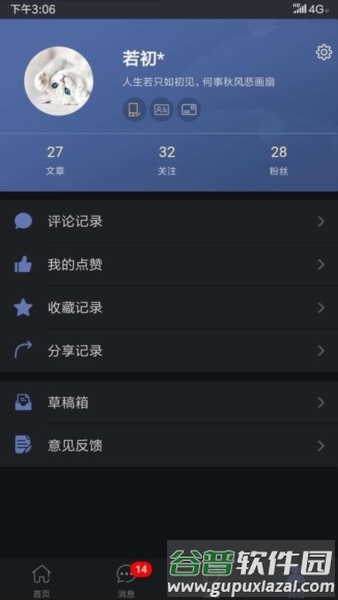 便捷查看个人发布的文章、关注数与粉丝量,主页展示个性化信息;