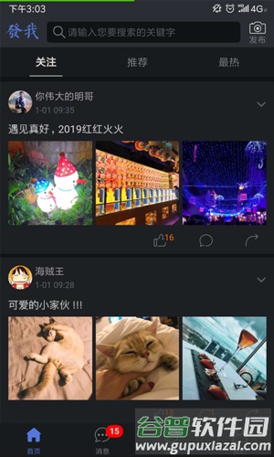 2、可随时关注感兴趣的用户,在关注页面直接查看其发布的动态;