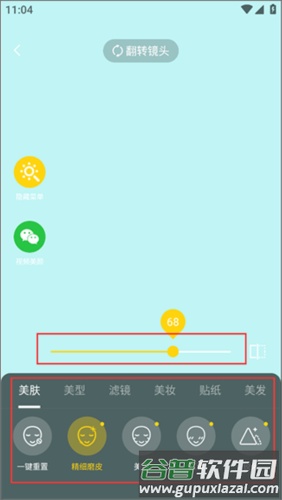 2、进入页面即可开启拍摄预览,通过下方选项调节各项美颜参数;