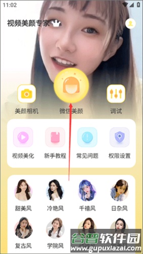 1、从本站下载安装视频美颜专家手机版,打开软件后点击首页的“微信美颜”入口;