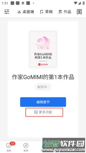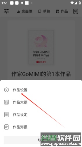 ④ 点击写新章节或已发布章节,可进入作品设置、回收站等更多选项;