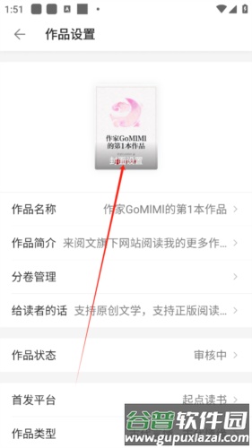 4、进入设置页面后,即可看到修改作品封面的选项。