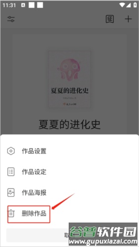 2、在展开的菜单中,点击删除作品功能。