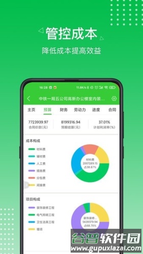 提供财务中心、现场管理、成本控制、材料管理、进度跟踪、任务分配、记工记账、水印相机、实名考勤、多方协作及企业OA等模块。