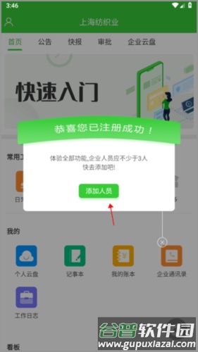 1、启动阿筑app后,界面会弹出提示窗口,点击中间的“添加人员”按钮。