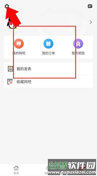 3、在“我的”页面找到左上角的设置图标,形状类似齿轮,点击进入。